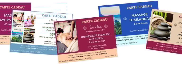 Pour Noël, un anniversaire, ou un évènement, vous souhaitez offrir un massage ? Je propose des cartes cadeaux personnalisables sur simple demande de votre part